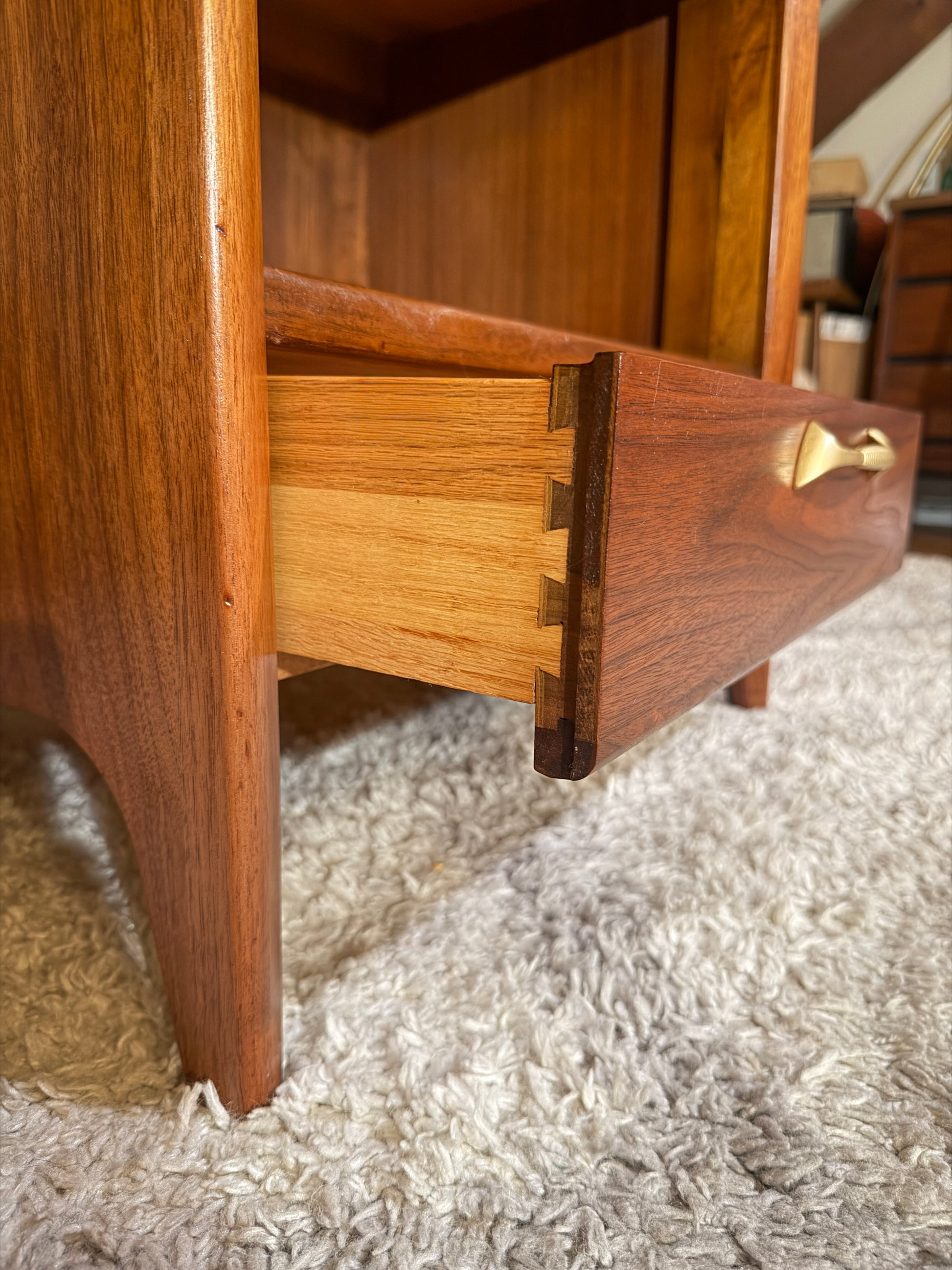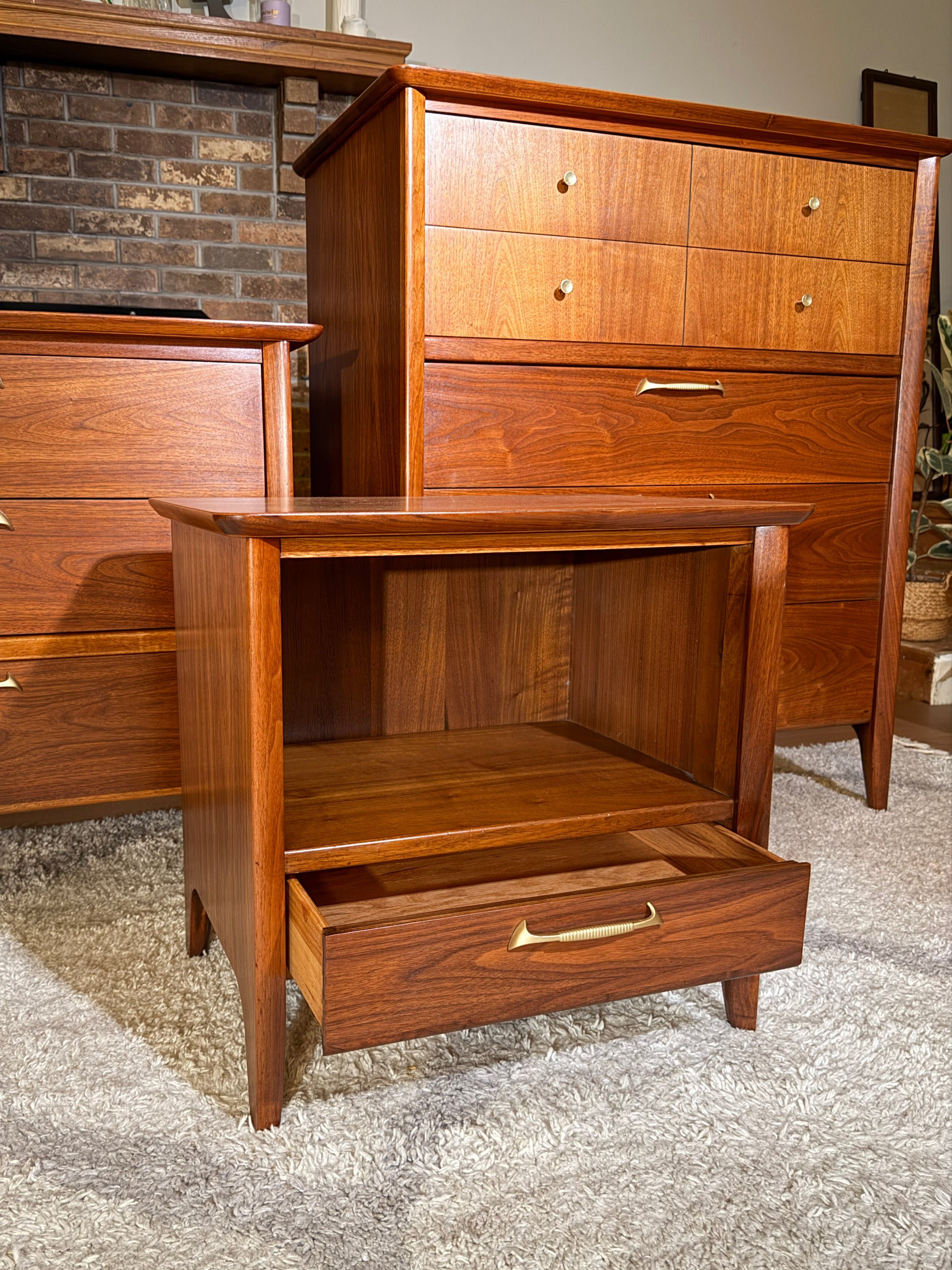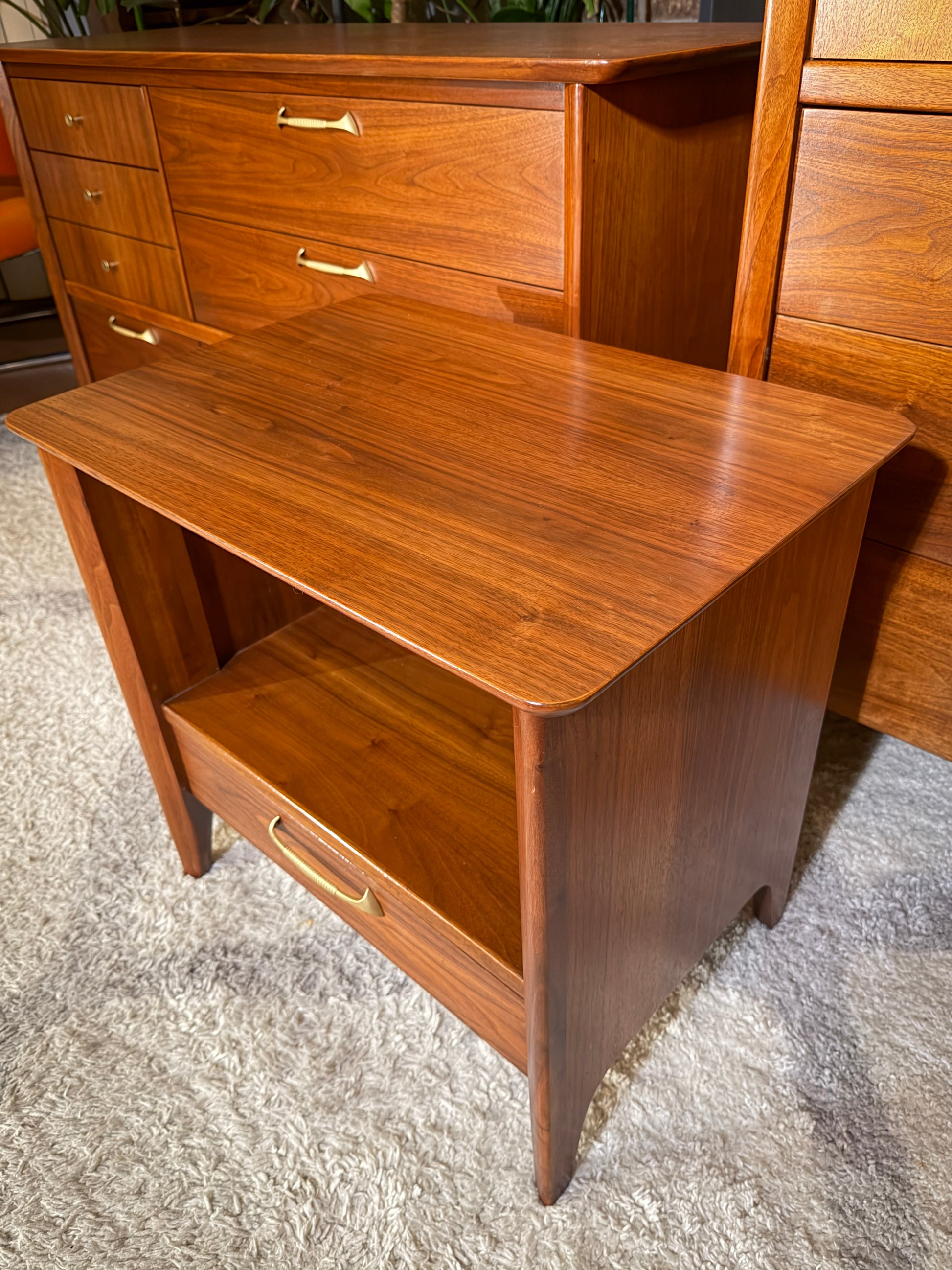 This single-drawer nightstand from the Drexel “Modern” collection offers just the right amount of storage with clean lines and an open shelf below. Its compact footprint makes it perfect for tight bedside spaces or as a side table in living rooms and studios.