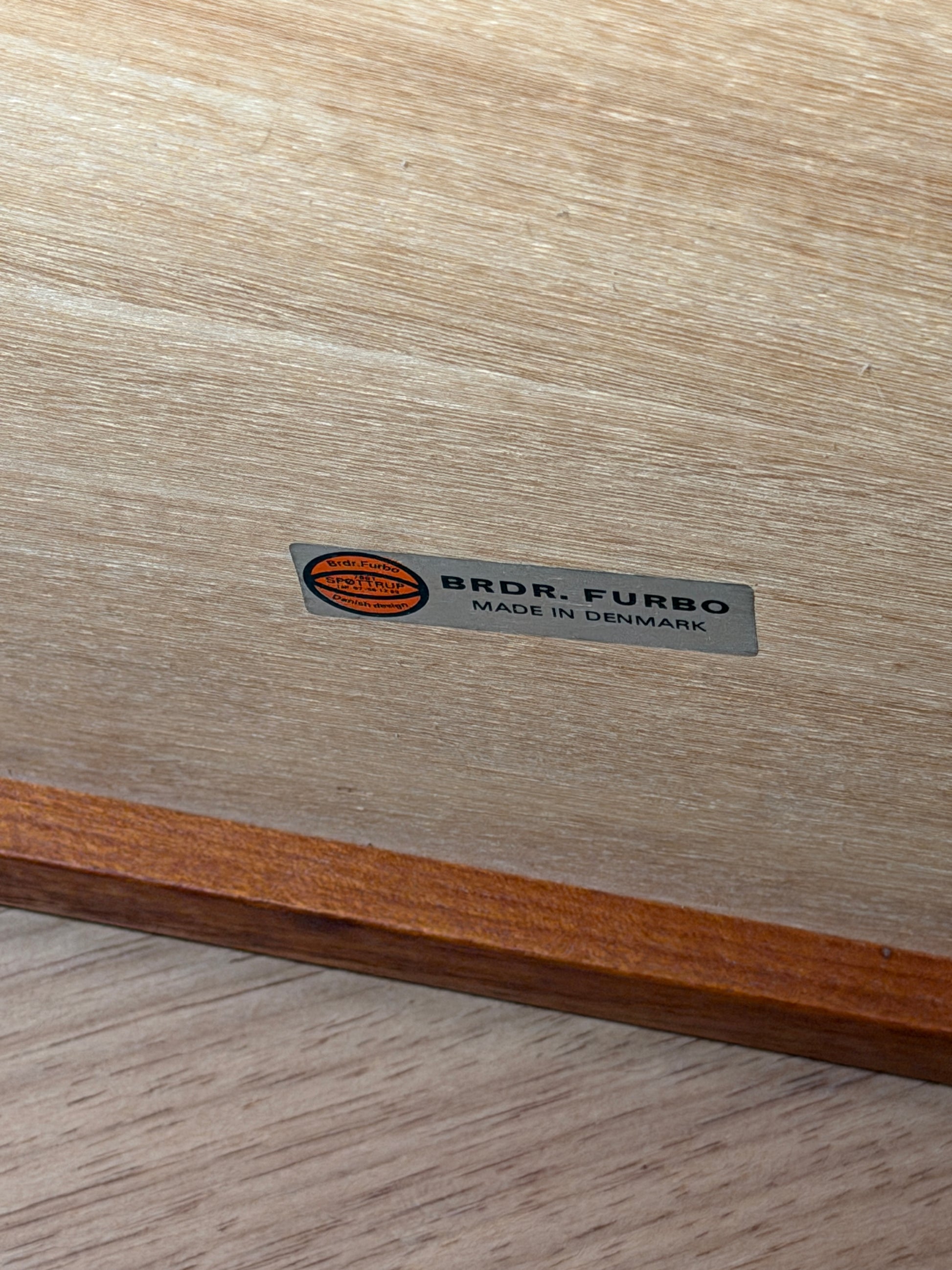 A beautiful blend of form and function, this mid-century Danish teak tea cart was crafted by BRDR Furbo and embodies the clean, timeless elegance of Scandinavian design. Its minimalist frame, rich teak grain, and two-tier shelving make it as practical as it is sculptural.