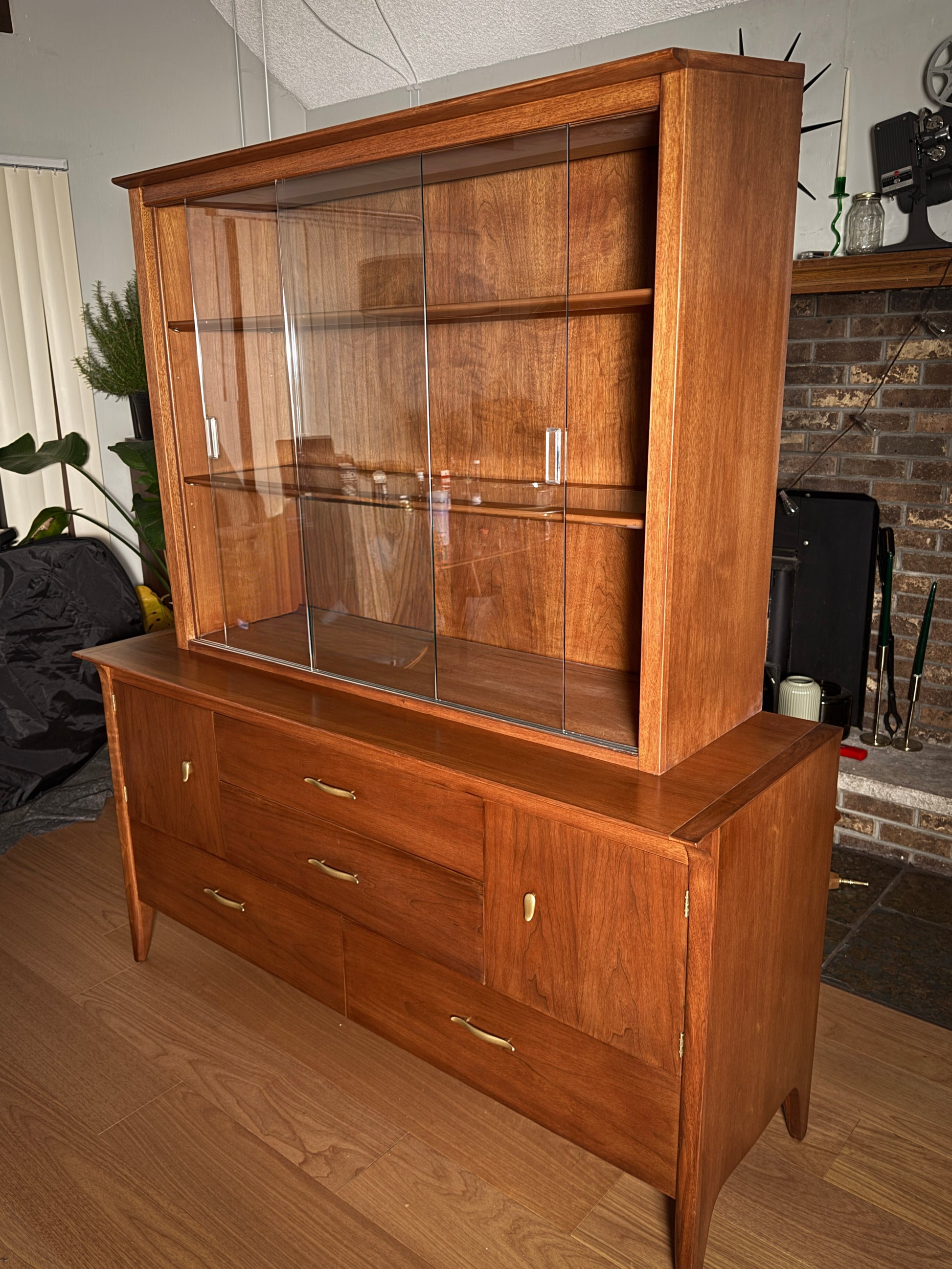 Mid-Century Drexel Profile Hutch – John Van Koert, Walnut China Cabinet & Credenza, 1950s MCM Storage